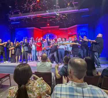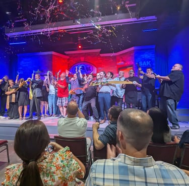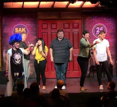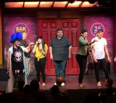 Local comedians face off in improvised scenes, sometimes based on suggestions from the audience.