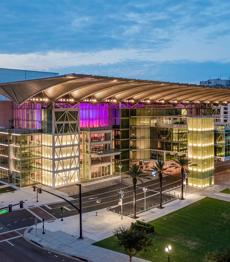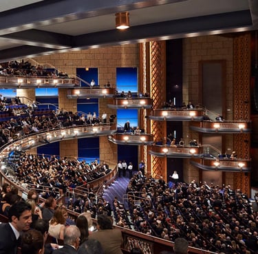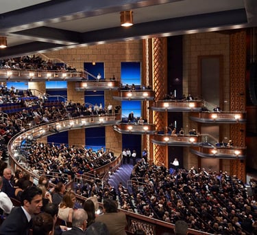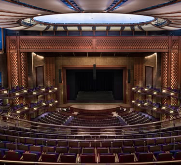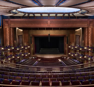 Large, multilevel performing arts venue showcasing Broadway plays, concerts & dance performances.