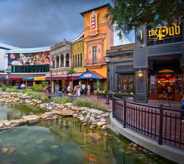 Outdoor, pedestrian-friendly mall with name-brand shops & restaurants plus 20-screen cinema & bars.