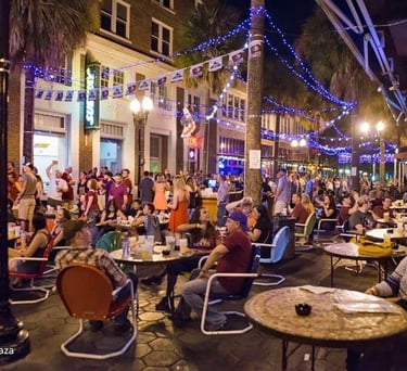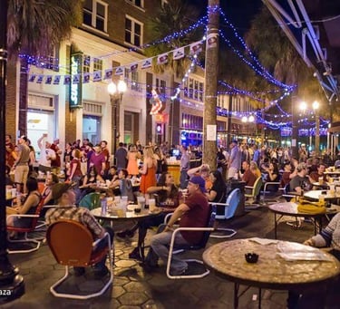 Festive complex of 8 diverse bars, eateries & nightclubs with lively block parties every weekend.