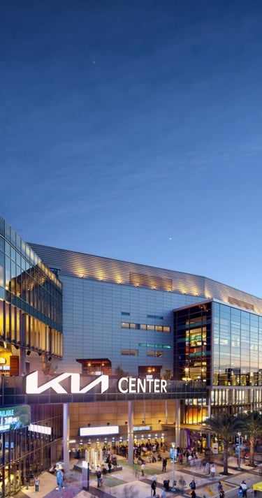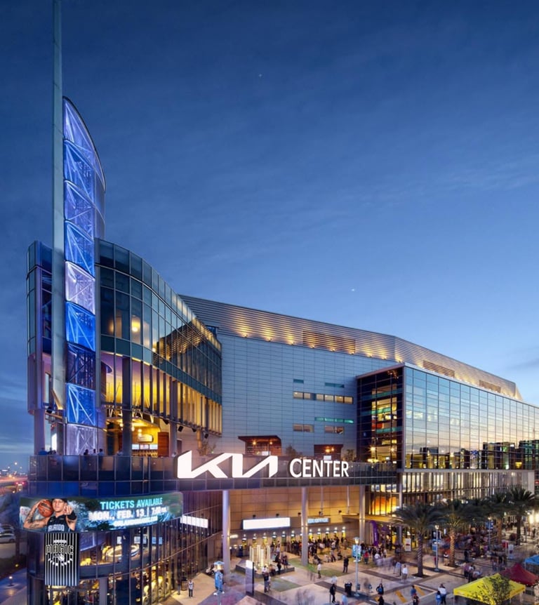 Home of the NBA's Orlando Magic & host to other sports & music events, with many food vendors.